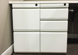 Lockable storage mounted under a work surface. A convenient solution for hanging files and documents. The hanging pedestal is 20″ deep. Available in Full Pull only.